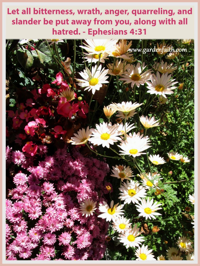 Prayer; Our Heavenly Father teach us to let go of anger and bitterness; and forgive. Teach us to be kind and compassionate, tender-hearted with a Christ-like attitude of love. Like the begonias and chrysanthemums in the photo grow together and thrive, let us learn to forgive and love one another and thrive. In Jesus’ holy loving name. Amen