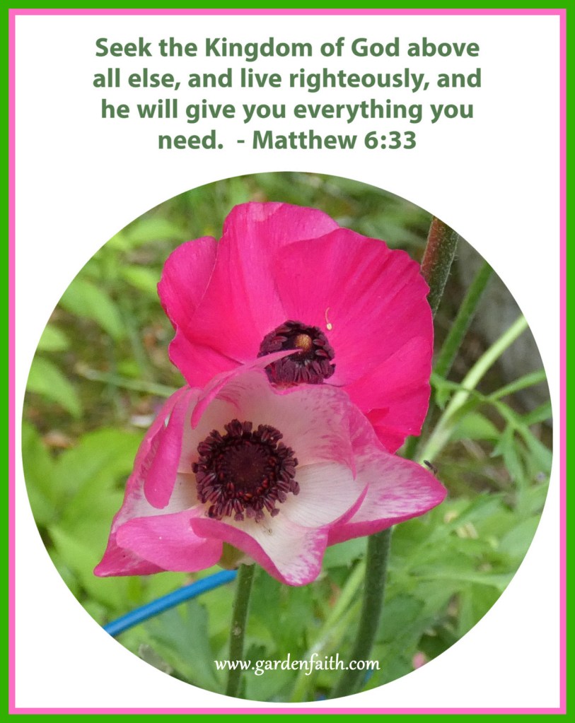 Prayer; Our Heavenly Father, thank You for Your love and care. Lord, teach us to reach out to you instead of relying on our understanding. Help us to live righteously and have faith and trust in Your care for us. Guide us to pursue Your kingdom and accept Your will. Like the Ranunculus blossom opening in the sunlight, let us be open-hearted and turn toward and share Your light, Lord Jesus. Amen