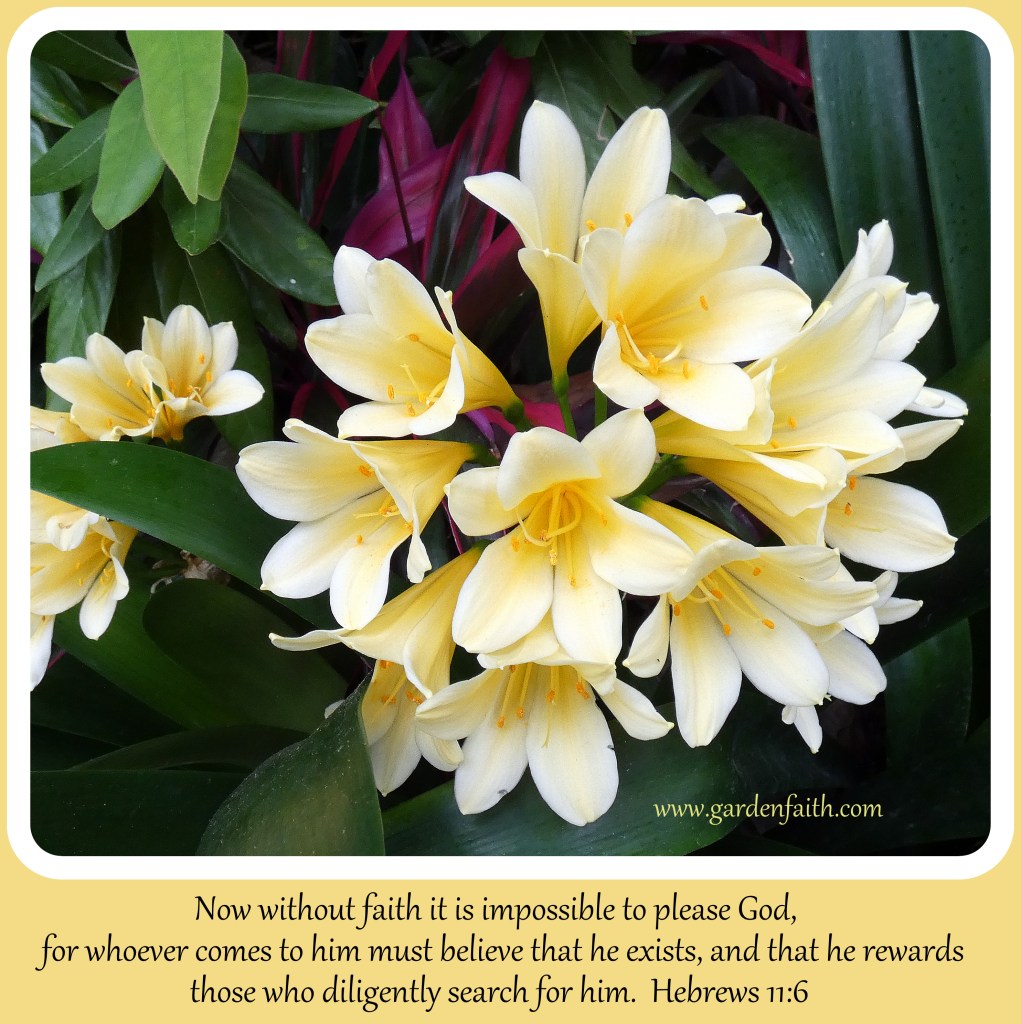 Our Heavenly Father, we thank You for Your remarkable love, mercy, and forgiveness. Strengthen our faith and help us to grow closer to You. Teach us to live by faith like David and Moses did. Like the trumpet-like flowers of the Clivia are gathered together and seem to glow in the light, let us gather together in Your name and glow with Your light. In Jesus’ holy name. Amen